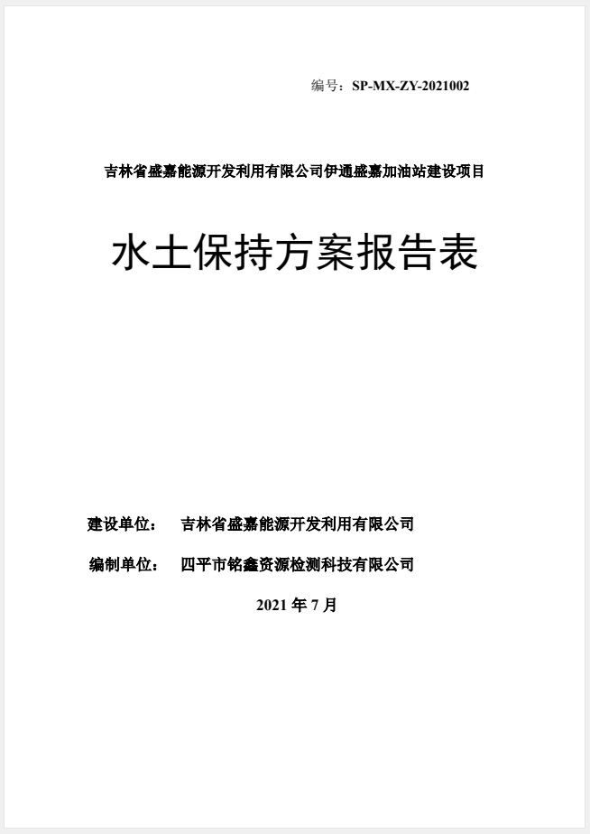 吉林省盛嘉能源開發(fā)利用有限公司伊通盛嘉加油站建設(shè)項目水土保持方案報告表